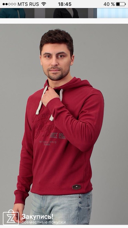 В очередной раз участвовала в закупке , заказывала мужу толстовку Tom Tailor и джинсы Rafle , все подошло , качество супер , муж в восторге .Больше всего переживала за джинсы , но зря... с длинной не угадала , но это не страшно , главное , что не короткие ... Анне , огромное спасибо за закупку ))