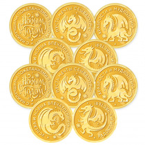 Шоколадные монеты Символ года Дракон с пожеланием Набор 10 шт.