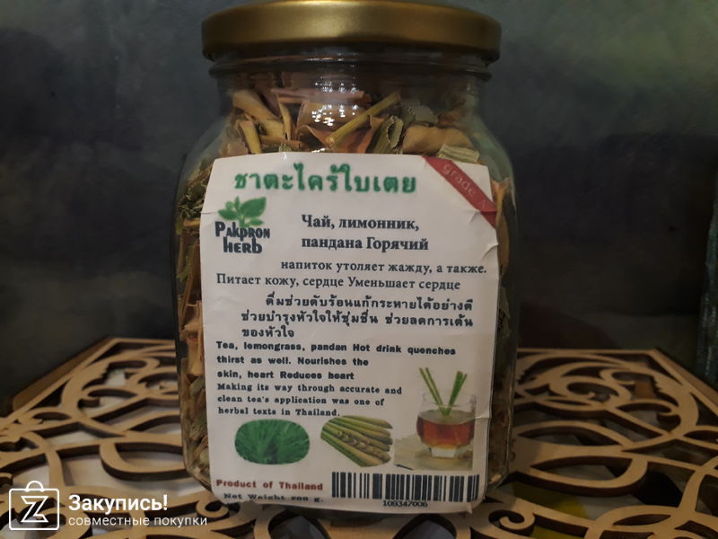 Лемонграсс обладает приятным цитрусовым ароматом. В отзывах я писала о листьях папайи, что я их сочетаю вместе с лимонной травой (50/50), получается балдёжный чай 😋, особенно кому близки вкус улун или мате. Эта трава незаменима при приготовлении тайских супов. Вообще лимонное сорго, как его ещё называют, хорошо дополнит и освежит почти любой чай. На фото лимонная трава уже в моей банке, но этикетка родная с упаковки, которая пришла из Тайланда через эту закупку.