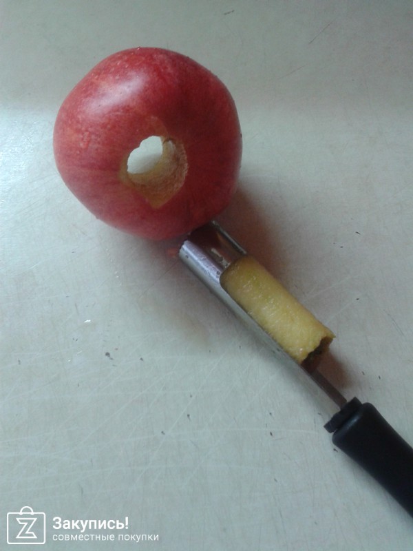 Благодаря отзывам, купила приспособление для выемки сердцевины у яблок. Теперь дети меня не тревожат: яблочко помыли, серединку выняли. Все довольны.