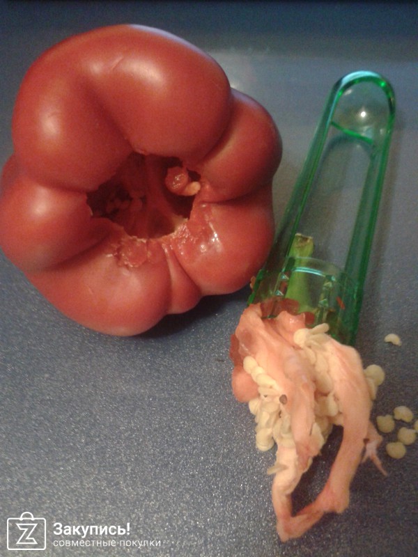 Получила я сегодня нож для перца! Классная вещь! Нож сам по себе легкий, и очень удобный в работе. По серединки болгарского перца ставим наш нож, затем немного прокручиваем и наш перчик очищен. Всё легко и быстро получилось. А ещё я хочу добавить, что ни один перец под натиском ножа не треснул и не сломался. У кого нету, советую приобрести! Не пожалеете!