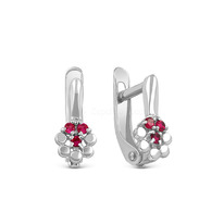 Серьги детские из родированного серебра с эмалью и фианитами - Фиалки 925 пробы