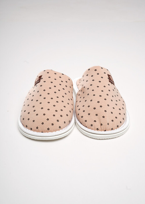 Домашние тапочки с закрытым носом из хлопкового трикотажного полотна с эластаном, сверху нашивка. Толстая подошва.