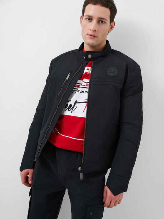 Мужская легкая куртка. Температурный режим до 0С. Ткань с ветрозащитным и водоотталкивающим покрытием. Внутри гладкая подкладка. Воротник-стойка застёгивается на кнопку. Один карман на молнии на груди и два боковых кармана на магнитных кнопках. Рукава регулируются кнопками.