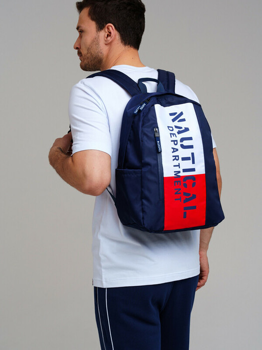 Рюкзак текстильный. 40*30*15 см. Широкие регулируемые мягкие лямки. Основное отделение и 1 карман на молнии. 2 боковых кармана без молнии. Внутри - отделение для ноутбука, 1 карман на молнии, 2 кармана без молнии, карабин для ключей. Усиленная спинка. Водонепроницаемая ткань. Усиленное дно.
