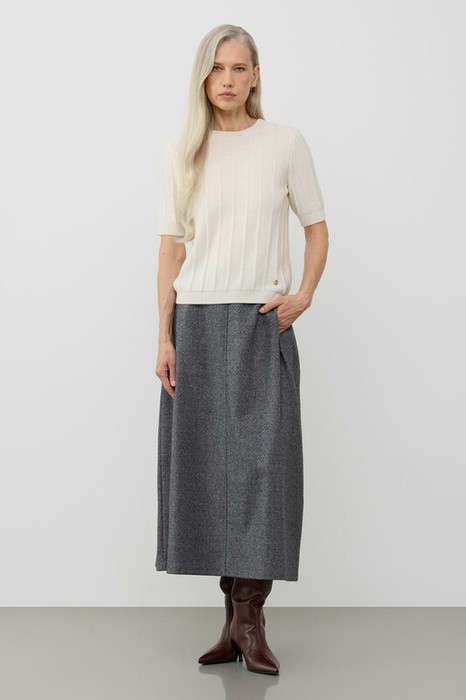 Короткий рукав и рельефная текстура придают джемперу современный вид, идеально сочетающийся с различными стилями одежды.