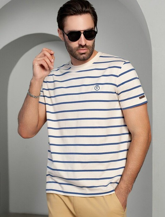 Совместные покупки Сургут Мужская одежда Футболки — 06.04 Vilatte Футболка из премиального хлопка с эластаном U49.024 экрю-св.синий