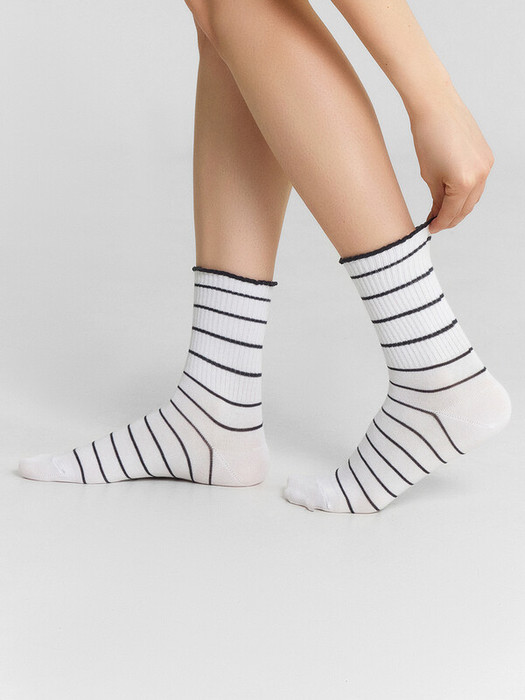 рис.3161  Женские высокие носки с резинкой на паголенке, оверлоченным краем и рисунком в виде горизонтальных полос.