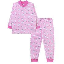 Пижама для мальчика из натурального хлопка. Джемпер с длинными втачными рукавами и брюки с эластичной резинкой в поясе. Мягкие манжеты по низу брюк сделаны из материала в рубчик. Оригинальная набивка и принт выполнены из стойких текстильных гипоаллергенных красителей. Изделие сохраняет цвет и форму после многократных стирок. Все трикотажные полотна производятся в соответствии с нормами швейцарского сертификата ЭкоТекс.