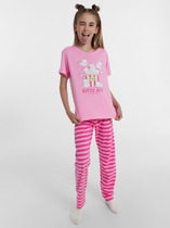 Трикотажная пижама с начёсом из натурального хлопка. Джемпер с длинными спущенными рукавами и брюки с эластичной резинкой в поясе. Мягкие манжеты на рукавах и по низу брюк. Оригинальные набивка и принт выполнены из стойких гипоаллергенных текстильных гипоаллергенных красителей. Изделие сохраняет цвет и форму после многократных стирок. Все трикотажные полотна производятся в соответсвии с нормами швейцарского сертификата ЭкоТекс.