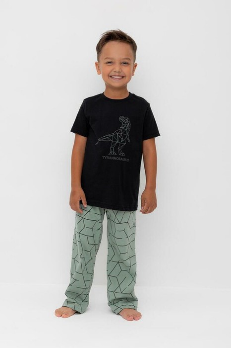 Трикотажная пижама из натурального хлопка. Футболка с короткими рукавами с принтом. У брюк эластичный пояс на резинке. Оригинальные принт и набивка выполнены из стойких, гипоаллергенных текстильных красителей. Пижама сохраняет цвет и форму после многократных стирок. Все трикотажные полотна производятся в соответсвии с нормами Швейцарского сертификата ЭкоТекс.