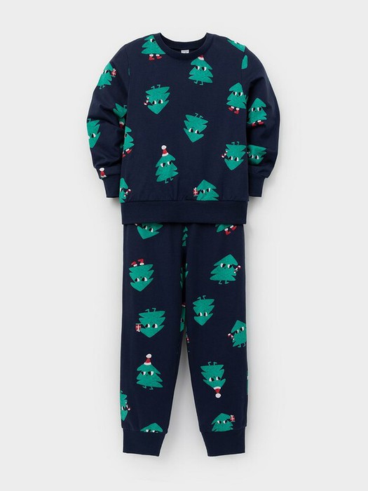 Новогодняя пижама из натурального хлопка.  Джемпер с длинными втачными рукавами и брюки с эластичной резинкой в поясе. Мягкие манжеты на рукавах и по низу брюк. Пижама отлично подойдёт для создания уютных домашних образов или в качестве подарка на Новый год и Рождество. Оригинальная набивка выполнена из стойких текстильных гипоаллергенных красителей. Изделие сохраняет цвет и форму после многократных стирок. Все трикотажные полотна производятся в соответствии с нормами швейцарского сертификата ЭкоТекс.