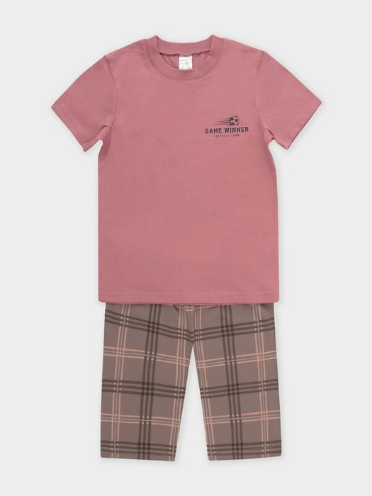 Пижама для мальчика из натурального хлопка. Футболка с короткими втачными рукавами и шорты с эластичной резинкой в поясе. Оригинальная набивка и принт выполнены из стойких текстильных гипоаллергенных красителей. Изделие сохраняет цвет и форму после многократных стирок. Все трикотажные полотна производятся в соответствии с нормами швейцарского сертификата ЭкоТекс.