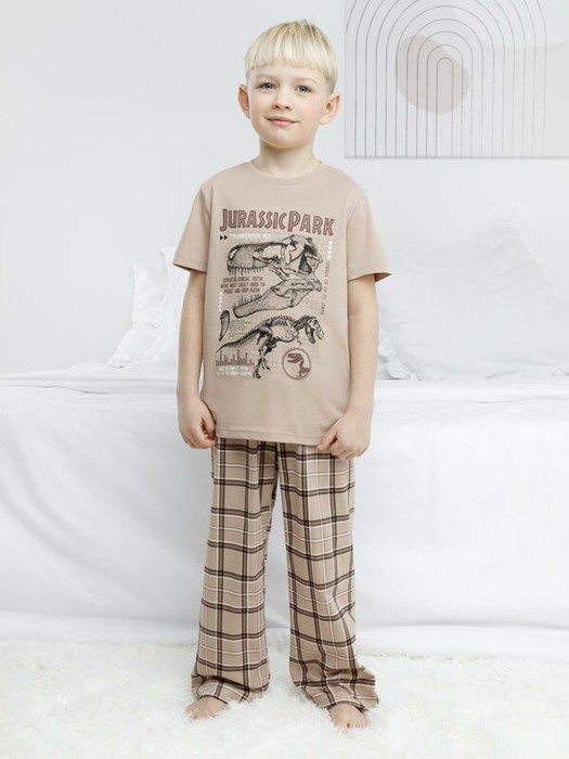 Трикотажная пижама из натурального хлопка. Футболка с короткими втачными рукавами и прямые брюки с эластичной резинкой в поясе. Оригинальные набивка и принт выполнены из стойких гипоаллергенных текстильных красителей. Изделие сохраняет цвет и форму после многократных стирок. Все трикотажные полотна производятся в соответсвии с нормами швейцарского сертификата ЭкоТекс.