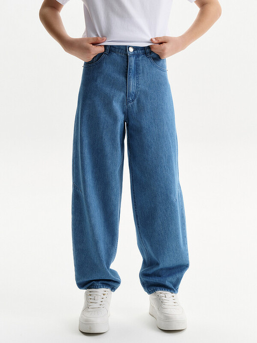 без сборки по поясу, с внутренней стороны пояса регулировка на резинку с петлями. На переде боковые карманы На уровне колена заложены вытачки по переду и спинке. По спинке кокетка и накладные карманы. Джинсы-багги (от англ. baggy — мешковатый) — это объемные брюки свободного кроя с широкими штанинами, часто с низкой или средней посадкой и присобранным, сужающимся книзу силуэтом. Они характеризуются комфортом, непринужденным стилем и популярны благодаря своей расслабленной эстетике, восходящей к уличной моде и хип-хоп культуре 90-х годов.