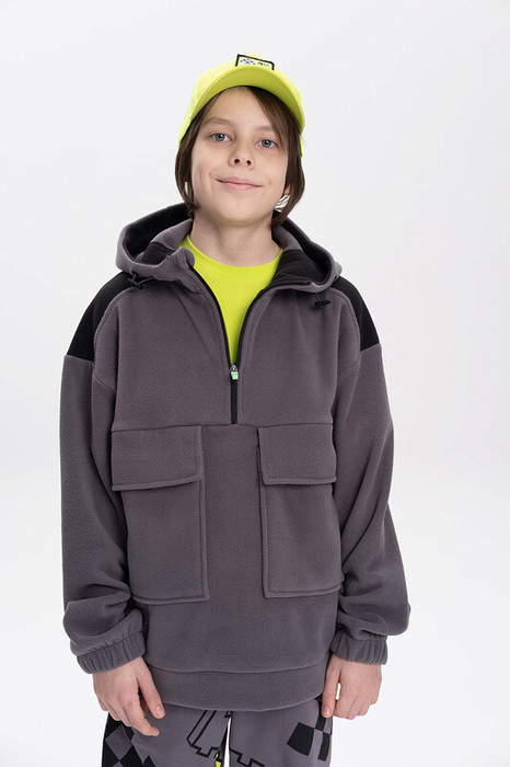 Толстовка флисовая для мальчика. Кофта теплая объемная со спущенным плечом заменит ветровку в прохладную погоду весной и осенью. Высокий воротник-стойка с утяжкой защитит от холода и ветра. Толстовка застёгивается на короткую молнию — актуальный модный тренд и оснащена накладными карманами для нужных мелочей. Модель выполнена из 100% полиэстера — она лёгкая, мягкая, износостойкая, просто стирается и быстро сохнет. На рукавах манжеты из основной ткани, она в меру растягивается и кофту легко надевать. Широкий размерный ряд позволяет приобрести эту флиску как годовалым малышам так и подросткам.