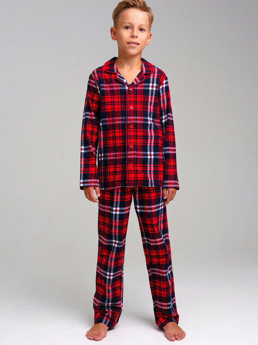 Пижама для мальчика подростка. 100% хлопок. Фланель - мягкая, приятная к телу ткань с небольшим начесом. Застежка на пуговицы. Карманы в брюках. Эластичный пояс с тесьмой позволяет легко надевать брюки и утягивать до комфортной посадки.