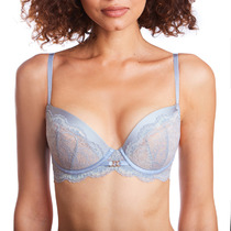 Бюстгальтер классической формы с формованной чашкой с небольшим Push-up по низу. Детали изделия выполнены из эластичного полотна и эластичного кружева. Бретели эластичные, съемные. Центральная деталь декорирована бантиком из атласной ленты.