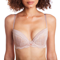 Бюстгалтер с формованной чашкой без push-up, с косточками. По верху чашки модель декорирвана кружевом.