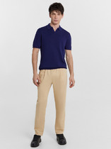 Брюки прямые. Боковые карманы в боковом шве. Пояс с эластичной тесьмой внутри. Шнур 10 PXC-1 с застроченными концами выводится через петли на внутренней части пояса.В области бокового шва лампасы.Нижние срезы брюк обработаны швом вподгибку на 2х игольной плоскошовной машине.