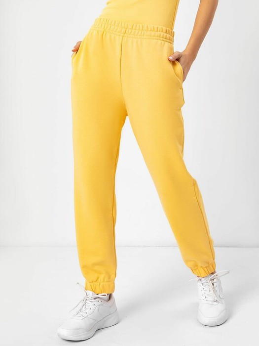Брюки изготовлены из трикотажного полотна футер. Брюки прямые. свободные. Пояс цельнокроеный с эластичной тесьмой внутри. В боковых швах расположены карманы, подкладка из основного полотна. Низ брюк обработан швом в подгибку с эластичной тесьмой внутри.