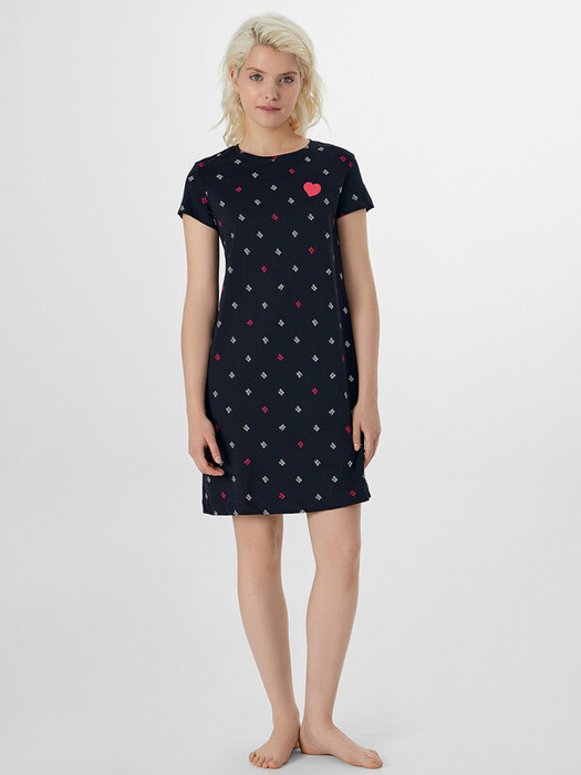 Круглая горловина и короткие рукава со спущенной линией плеча обеспечивают полную свободу, а лаконичная мини-длина добавляет образу лёгкости.