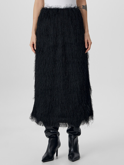 Универсальная длина миди и элегантный черный цвет позволяют сочетать юбку как с высокими каблуками, так и с элегантными лодочками. Она станет любимой вещью в вашем зимнем гардеробе — ведь в ней можно встречать праздники с особенным настроением.