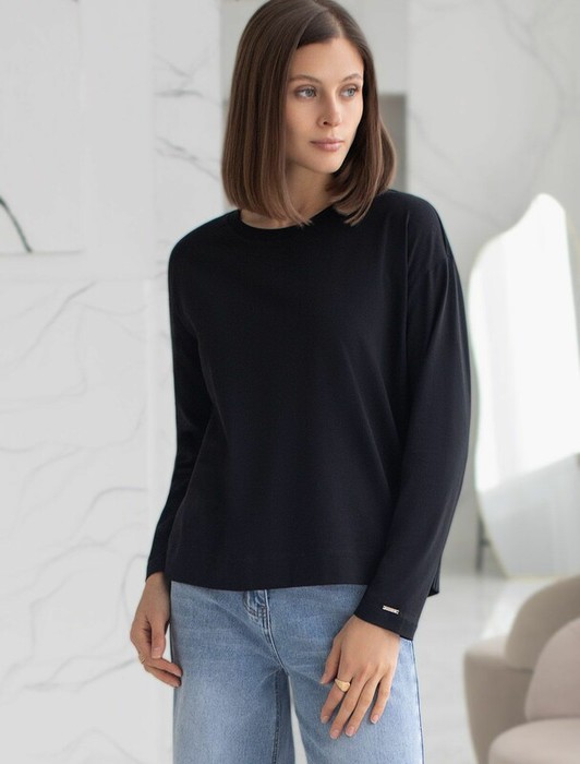 09.04 Vilatte Базовый лонгслив из премиального хлопка с эластаном D49.147 черны