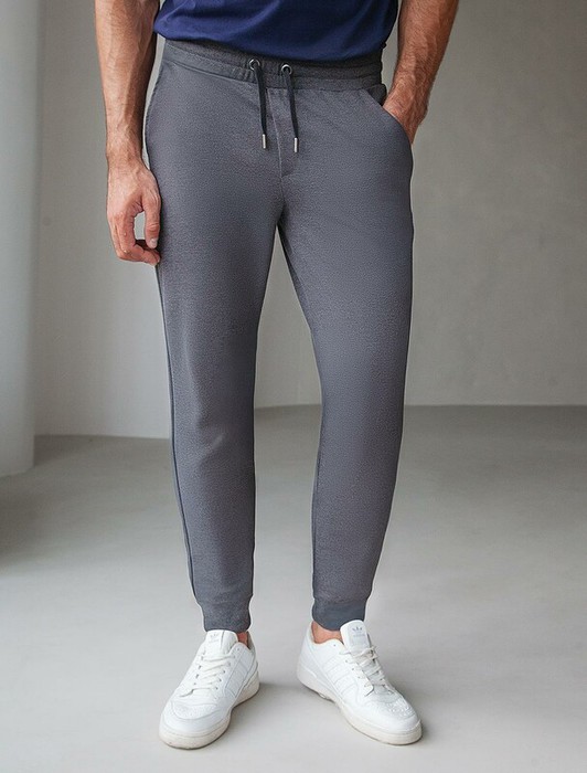 Брюки-джоггеры выполнены из эластичного футера. Изделие с двумя боковыми и одним задним карманом украшено логотипом бренда. Посадка регулируется шнуром, продетым в широкий эластичный пояс. Мягкий и плотный материал хорошо пропускает воздух, а наличие ПЭ в составе способствует формоустойчивости и легкости изделия. Сочетается в костюме с худи U49.039