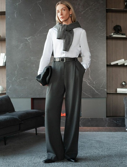 Совместные покупки Сургут Женская одежда Брюки — 09.04 Vilatte Брюки-палаццо на резинке сзади D44.148 серый меланж