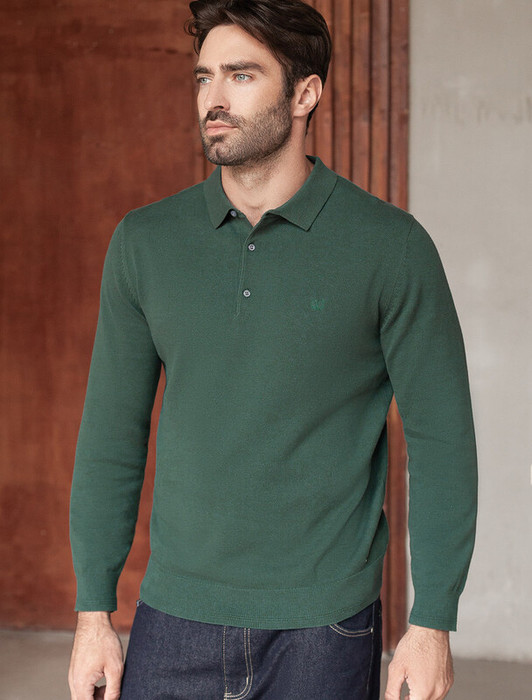 Совместные покупки Сургут Мужская одежда Джемперы, свитеры — 09.04 Vilatte Джемпер-поло из хлопка с нейлоном U39.017 дымчатый зеленый