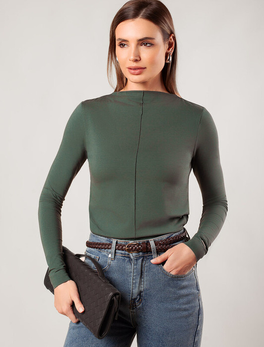 Джемпер прямого силуэта с цельнокроеным воротом выполнен из премиального хлопка. Наличие эластана в составе гарантирует комфорт и формоустойчивостиь изделия. Вертикальный декоративный шов спереди, визуально вытягивает силуэт. Базовая модель хорошо впишется в любой гардероб и подойдет для офисного дресс-кода. К изделию пришит металлический логотип бренда.
