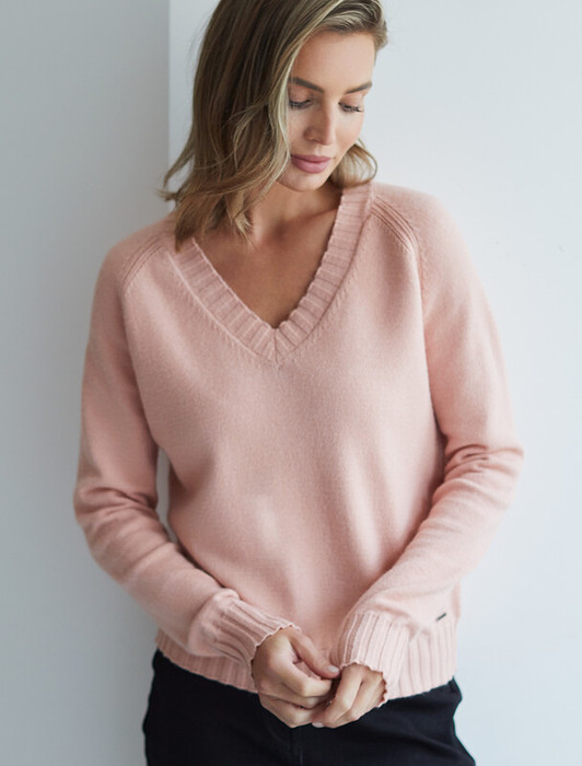 Совместные покупки Сургут Женская одежда Джемперы, свитеры, водолазки — 09.04 Vilatte Джемпер с V-вырезом из пряжи с кашемиром D39.360 пудровый