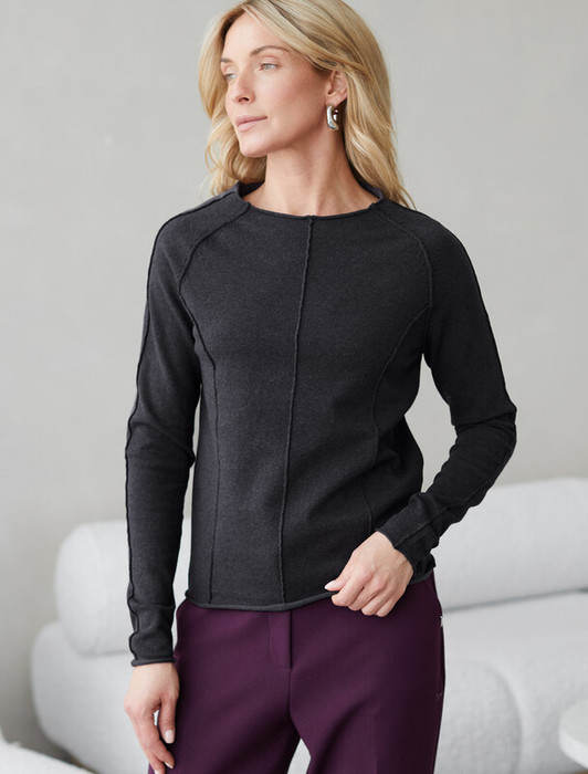 Джемпер тонкой вязки выполнен из мягкой хлопковой пряжи. Модель с декоративными швами идеально сидит по фигуре подчеркиваяч изгибы тела. Подходит для любой фигуры и впишется в любой гардероб. Изделие дополнено металлическим логотипом бренда.
