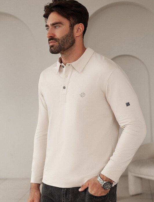 Лонгслив с пуговицами дополнен небольшими разрезами по бокам и ненавязчивой вышивкой в виде надписи в тон основному цвету, которые придают образу индивидуальность, не перегружая его лишними акцентами. Лаконичная вышивка служит оригинальным декоративным элементом, гармонично вписываясь в общий минималистичный облик. Такой подход делает лонг универсальным решением для тех, кто ценит прост