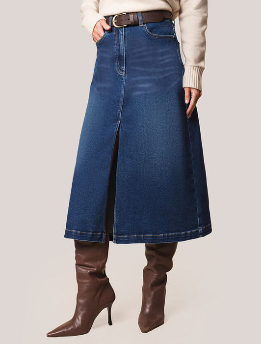 09.04 Vilatte Джинсовая юбка из плотной эластичной джинсы 13.8OZ. D56.122 синий