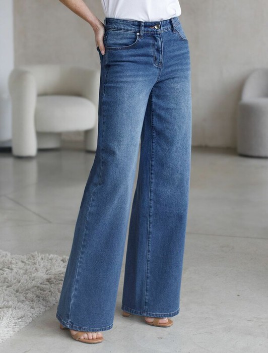 Стильные джинсы трубы синего цвета цвета прямого кроя выполнены из эластичного  денима плотностью 12,3 OZ, что делает их особенно удобными для повседневной носки. Джинсы правильного кроя визуально вытягивают силуэт, благодаря эластану в составе аккуратно садятся на любую фигуру, подчеркивая достоинства и обеспечивают максимальный комфорт в течение дня, не сковывая движения. Широкая размерная линейка подходит для разных типов фигур: свободные джинсы комфортны как для обладательниц пышных форм, так и для худеньких. Вы сможете подабрать джинсы на низкий или высокий рост. Джинсы идеально держат форму даже при активном движении и не вытягиваются после долгой носки. Качественная надежная фурнитура  делает эти джинсы премиальными.