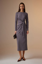 Платье длины мини с воротником поло выполнено из мягкого трикотажа на основе шелковистой эластичной вискозы. Жаккардовое переплетение образует геометрический узор. Застежка на перламутровые пуговицы подчеркивает гладкость пряжи. Контрастный воротник и манжеты делают узор еще более выразительным. Можно сочетать с жакетом D31.388 из жаккардовой коллекции.