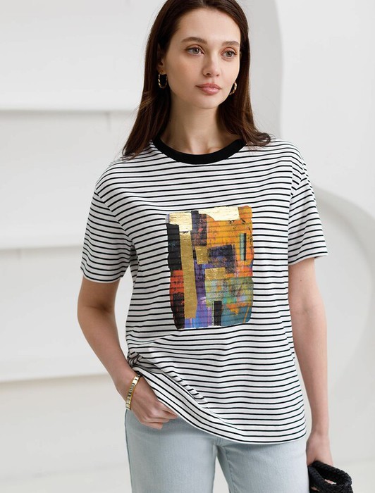 Совместные покупки Сургут Женская одежда Футболки — 09.04 Vilatte Футболка D49.145 белый-черный_абстракция