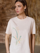 Футболка выполнена из премиального хлопка.Принт "леопард" нанесен фактурными красками с устойчивым покрытием. Наличие эластана в составе гарантирует комфорт и формоустойчивость. Изделие дополнено фирменным металлическим логотипом бренда.