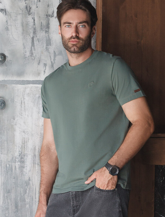 Совместные покупки Сургут Мужская одежда Футболки — 21.04 Vilatte Футболка из премиального хлопка с эластаном U49.009 т.оливковый