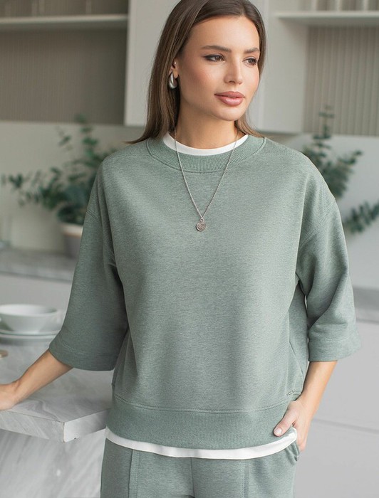 21.04 Vilatte Свитшот свободный из петельчатого футера двухнитки с эластаном D49