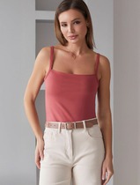 Топ с V-вырезом выполнен из премиального хлопка. Модель дополнена регулируемыми бретелями, позволяющими носить изделие на нужном уровне. Эластичный материал гарантирует комфорт и формоустойчивость. Из украшений металлический логотип бренда.