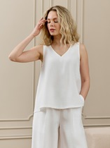 Элегантный топ натурального белого цвета с регулируемыми лямками выполнен из сатиновой ткани премиального качества, сочетающей полиэстер и эластан в составе. Этот уникальный дуэт материалов обеспечивает комфортную посадку топа. Универсальный крой делает топ идеальным базовым элементом как для повседневных образов с джинсами или юбкой, так и для вечерних луков под жакет или кардиган.
