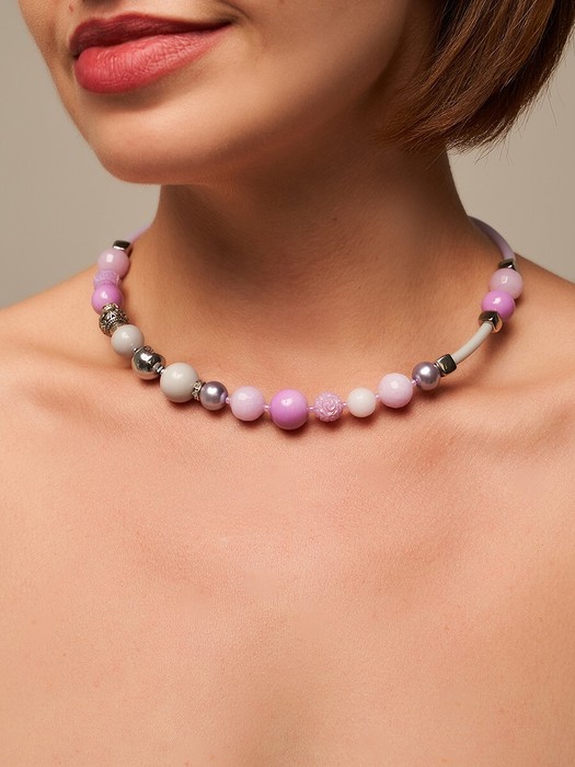 Кварцит, жемчуг Majorca, гематит, каучук, латунь.