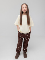 Брюки для девочки из мягкого петельчатого трикотажа. Эластичный пояс на резинке регулируется по ширине с помощью шнурка, по бокам два удобных кармана, внизу эластичные манжеты.