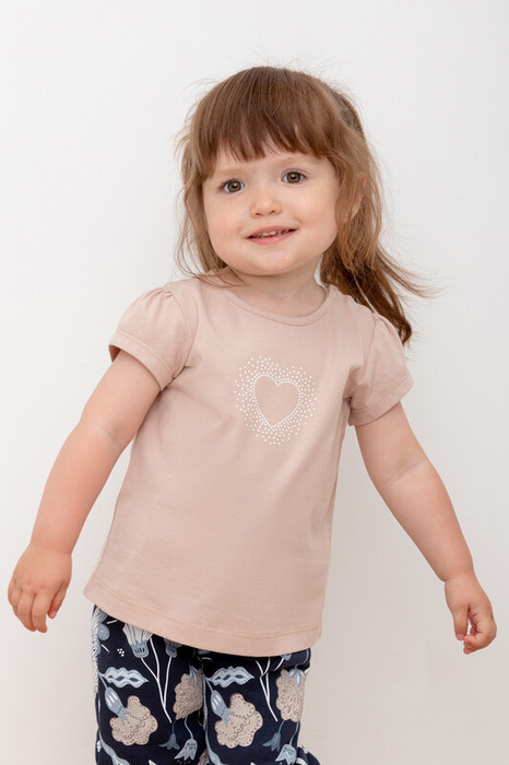 Футболка для девочки из высококачественного трикотажного полотна. Для удобства предусмотрена застежка на 2 кнопки. Оригинальный принт выполнен из стойких текстильных гипоаллергенных красителей.