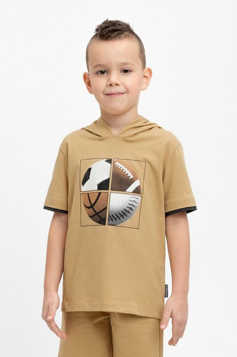 Футболка с капюшоном для мальчика из высококачественного трикотажного полотна. Оригинальный принт выполнен из стойких текстильных красителей.