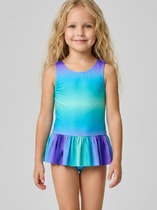 Слитный купальник на лямках для девочки. Украшен оборками. Оригинальная набивка выполнена из стойких гипоаллергенных красителей.
