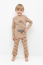 Трикотажная пижама из натурального хлопка. Джемпер с длинными втачными рукавами. У брюк в комплекте мягкий, эластичный пояс на резинке. Оригинальная набивка выполнена из стойких, гипоаллергенных текстильных красителей. Комплект сохраняет цвет и форму после многократных стирок. Все трикотажные полотна производятся в соответсвии с нормами Швейцарского сертификата ЭкоТекс.